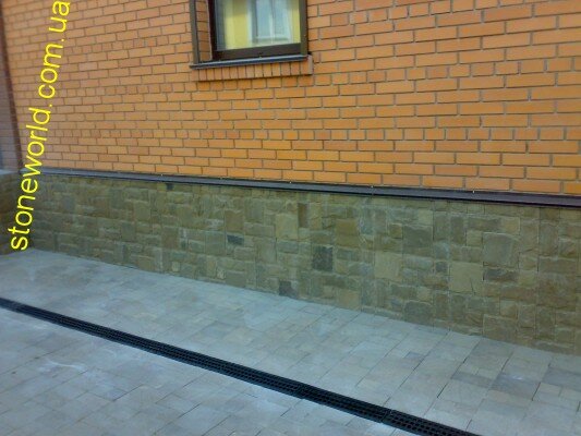 фасад кирпич+каменьмалиновый кварцитцоколь здания отделанный плиткой из камняПлитка песчаниккрасный песчаник